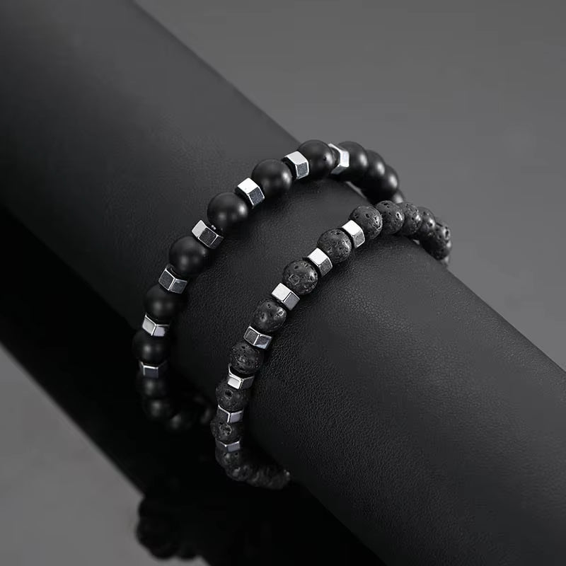 Daily Wear: A versatile black stone bracelet to complement any outfit.