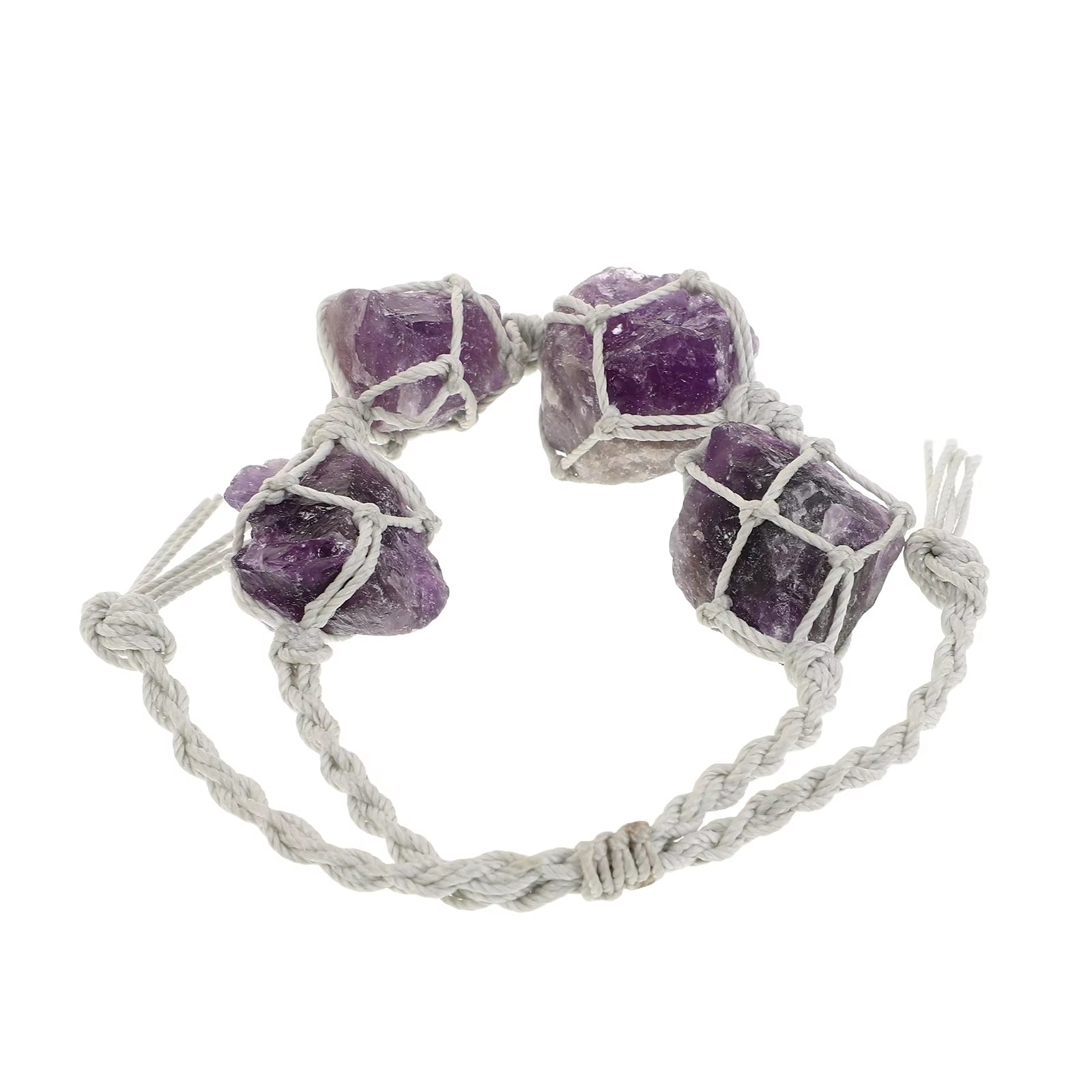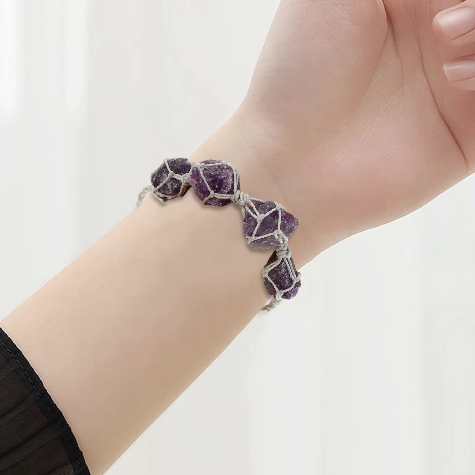 Handmade Amethyst Crystal Bracelet – Adjustable Braided Natural Stone Jewelry