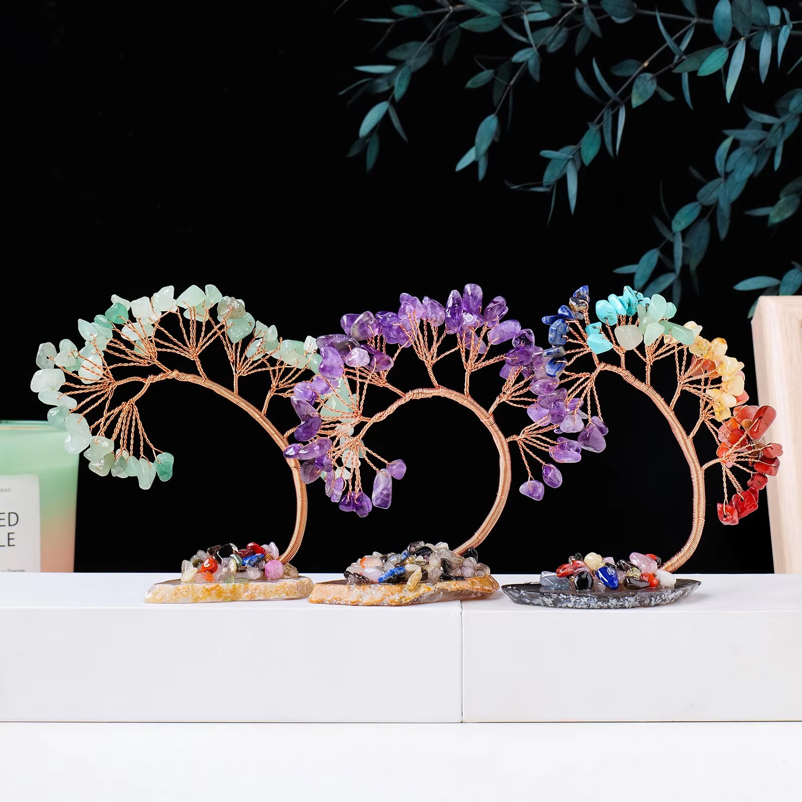 Natural Crystal Lucky Tree – Copper Wire with Agate Base & Healing Crystal Gravel